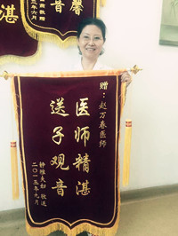 年9月9日上午,杭州红房子赵万春主任收到了一份来自杭州特殊的包裹,打开一看是一位叫静雅的患者寄来的一封亲笔感谢信以及一面写着“送子观音,医师精湛”的锦旗。静雅在信中告诉赵万春主任,自己现在已经是一个4个月大的宝宝的妈妈了。本来想要亲自来医院表示感谢,但是孩子太小走不开,所以只好把信和锦旗寄过来了。
